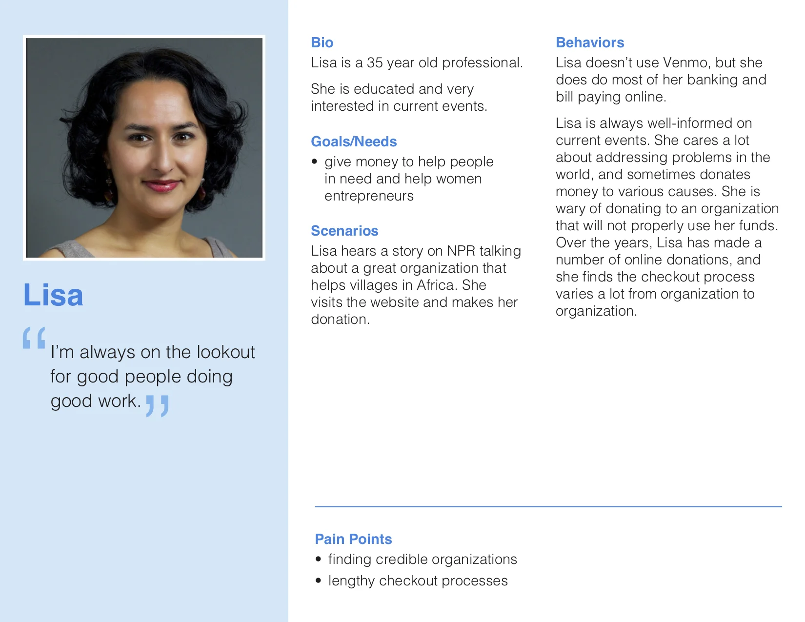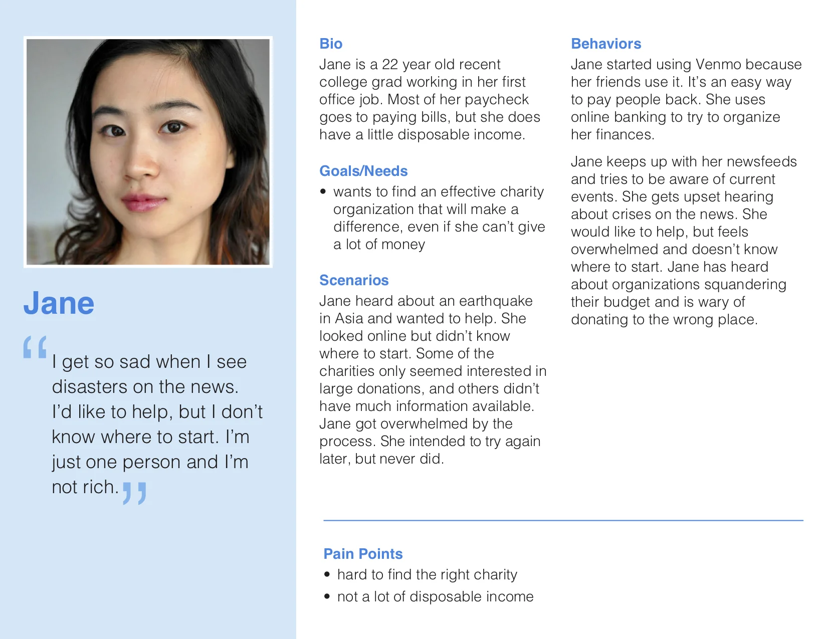 We developed persona based on the patterns from our affinity map and user interviews to determine their specific pain points in more detail.